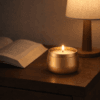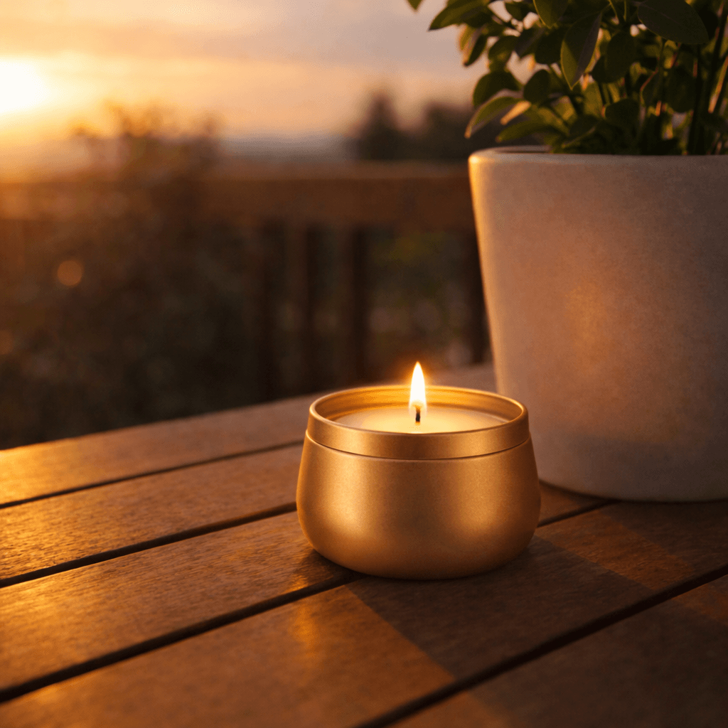 Vela en lata metálica mediana, mayor duración.